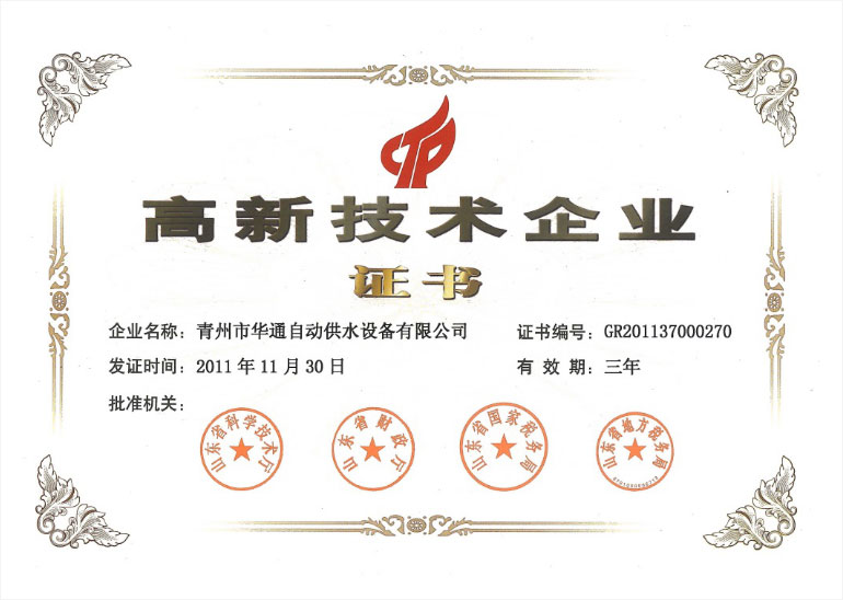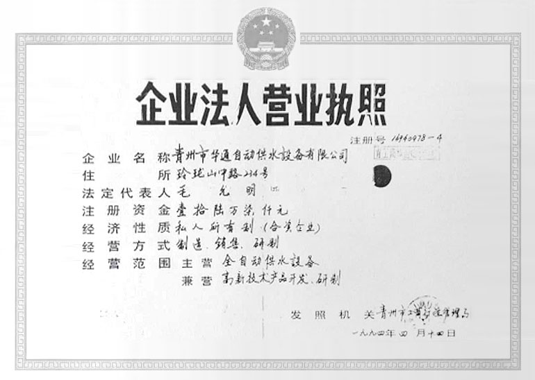 公司前身青州市華通自動供水設(shè)備有限公司正式成立!成立伊始就制定了自主研發(fā),獨立創(chuàng)新的發(fā)展策略;并研發(fā)成功了首臺變頻供水設(shè)備。