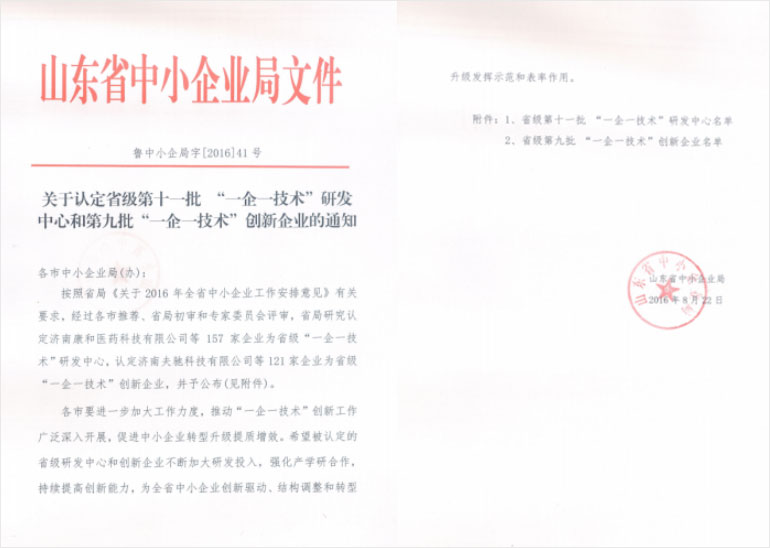 6月17日,榮獲"山東省專精特新"企業(yè),標(biāo)志著公司正式成為具備精細(xì)化、特色化、新穎化優(yōu)勢的中小企業(yè)。