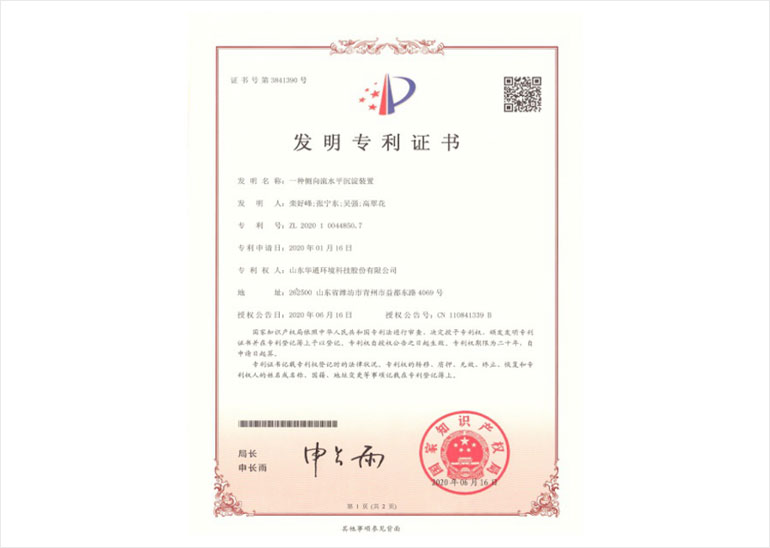 取得發(fā)明專利“一種側(cè)向流水平沉淀裝置”。