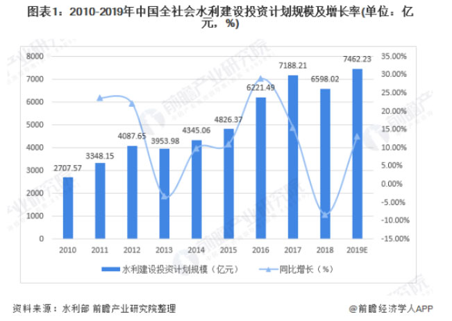 根據(jù)水利部數(shù)據(jù),2010-2019年,我國(guó)全社會(huì)水利建設(shè)投資完成額呈現(xiàn)波動(dòng)增長(zhǎng)的趨勢(shì)。2019年全年水利建設(shè)完成投資7260億元,同比增長(zhǎng)9.96%。