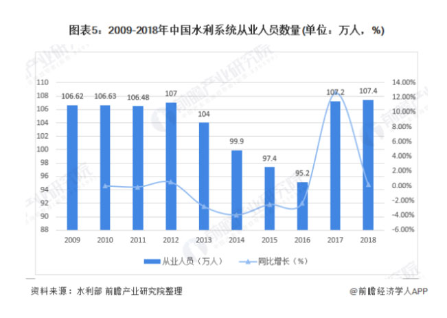 3、我國(guó)水利水電工程施工優(yōu)質(zhì)企業(yè)數(shù)量較小,水利系統(tǒng)從業(yè)人員達(dá)107.4萬(wàn)人