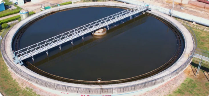 從生化池流出的污水隨后進(jìn)入上圖中這個圓滾滾的二沉池,它是可以通過重力作用將水與污泥分離開。大家看,現(xiàn)在的水是不是很清澈了呀~這個水平已經(jīng)優(yōu)于目前許多城市的內(nèi)湖或者是景觀河流的水平了。污水到達(dá)這里,就是生化處理的整個過成了。